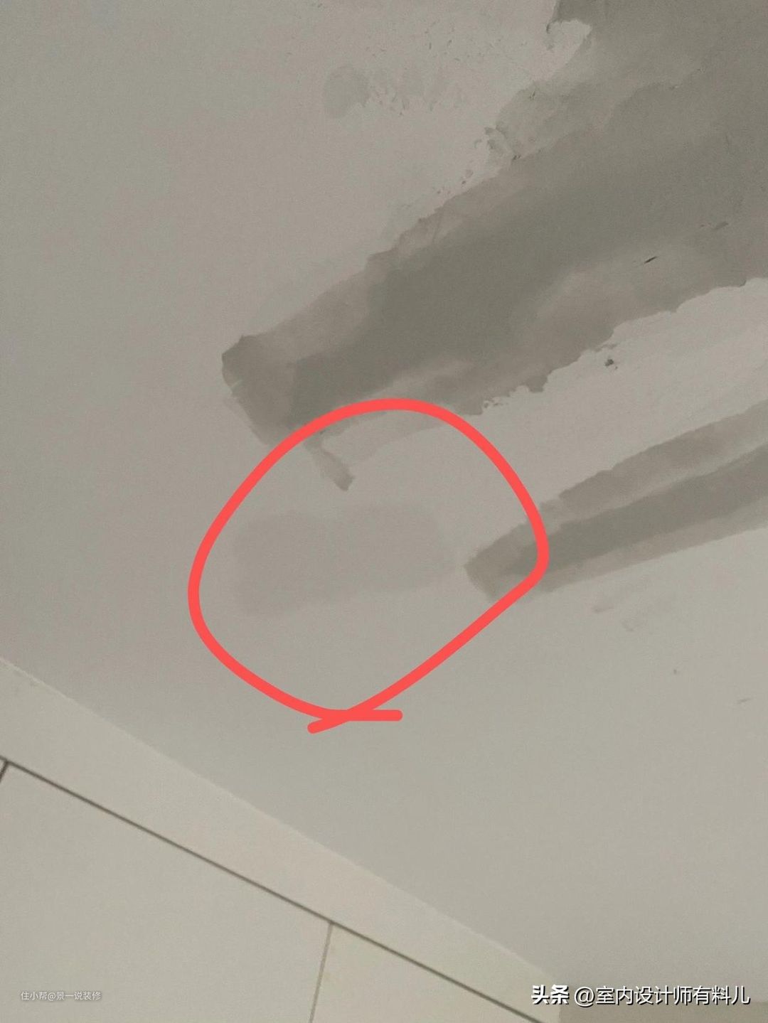 当时装修的时候大意了,物业和装修公司说单做自己楼顶没用,水会从别的楼顶渗进来,于是,顶上的防水做得很大意,入住后每天就是过缝缝补补的日子,这边修完没两天,边上又漏了。