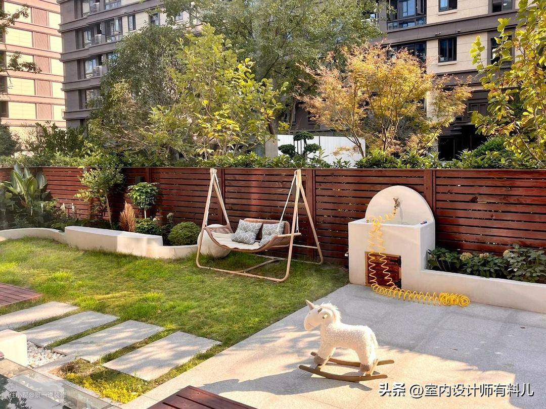 可以不出门就能感受春夏秋冬,一楼院子养些花花草草,门外的景郁郁葱葱,买了这房子,就仿佛拥有了诗和远方,宁静的傍晚可以在花园里感受时光流逝,这太舒服了。