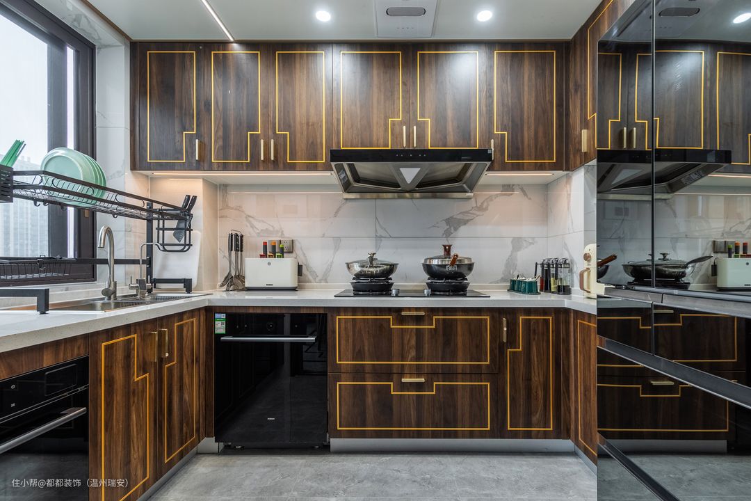 冰箱→洗→切→炒→上菜,这里面最重要的一点就是操作台面的尺寸。相对来说一字型或者双一字橱柜使用最不便利,L型橱柜使用起来方便,U字型橱柜使用率最高。同时,需要考虑转角地柜的使用,以及电器高柜的布局。