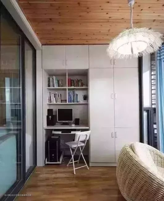 阳台由于其连接户外的特性,确实拥有比室内更好的采光效果。对于空间有限的刚需家庭来说,利用阳台来创造一个阅读或工作角落是一个非常实用且创新的解决方案。通过在阳台墙面上安装书柜,或者设计一个书桌与书柜的组合柜,不仅能够充分利用空间,还能为家人提供一个安静舒适的阅读或工作区域。这样的设计既满足了功能需求,又保持了家居环境的整洁美观,确实是一个值得称赞的做法。
