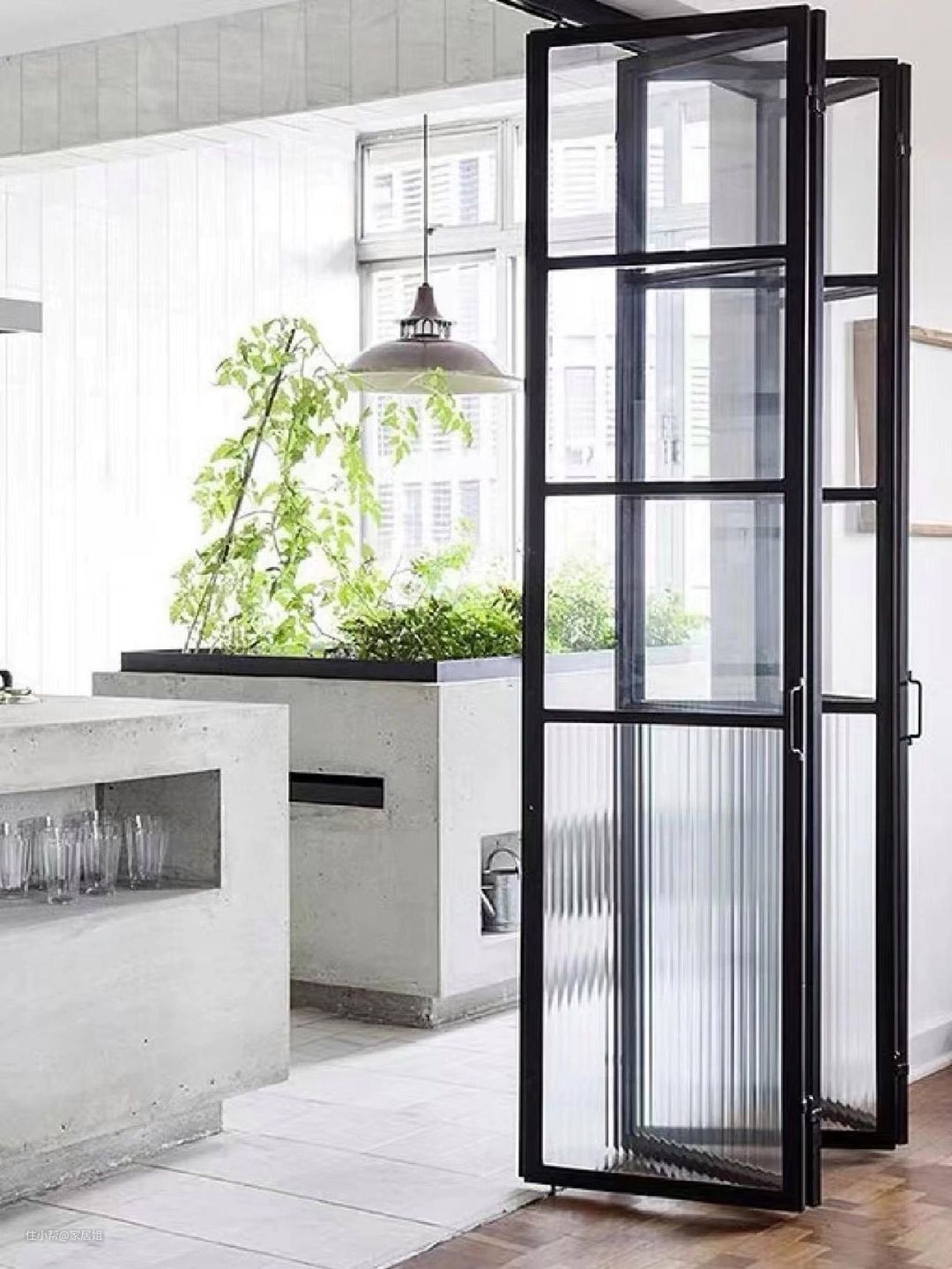 折叠门的款式很多,建议大家在做的时候选择极简边框的会更美观、大方,同时折叠门质量轻,还结实、耐用、不易变色。