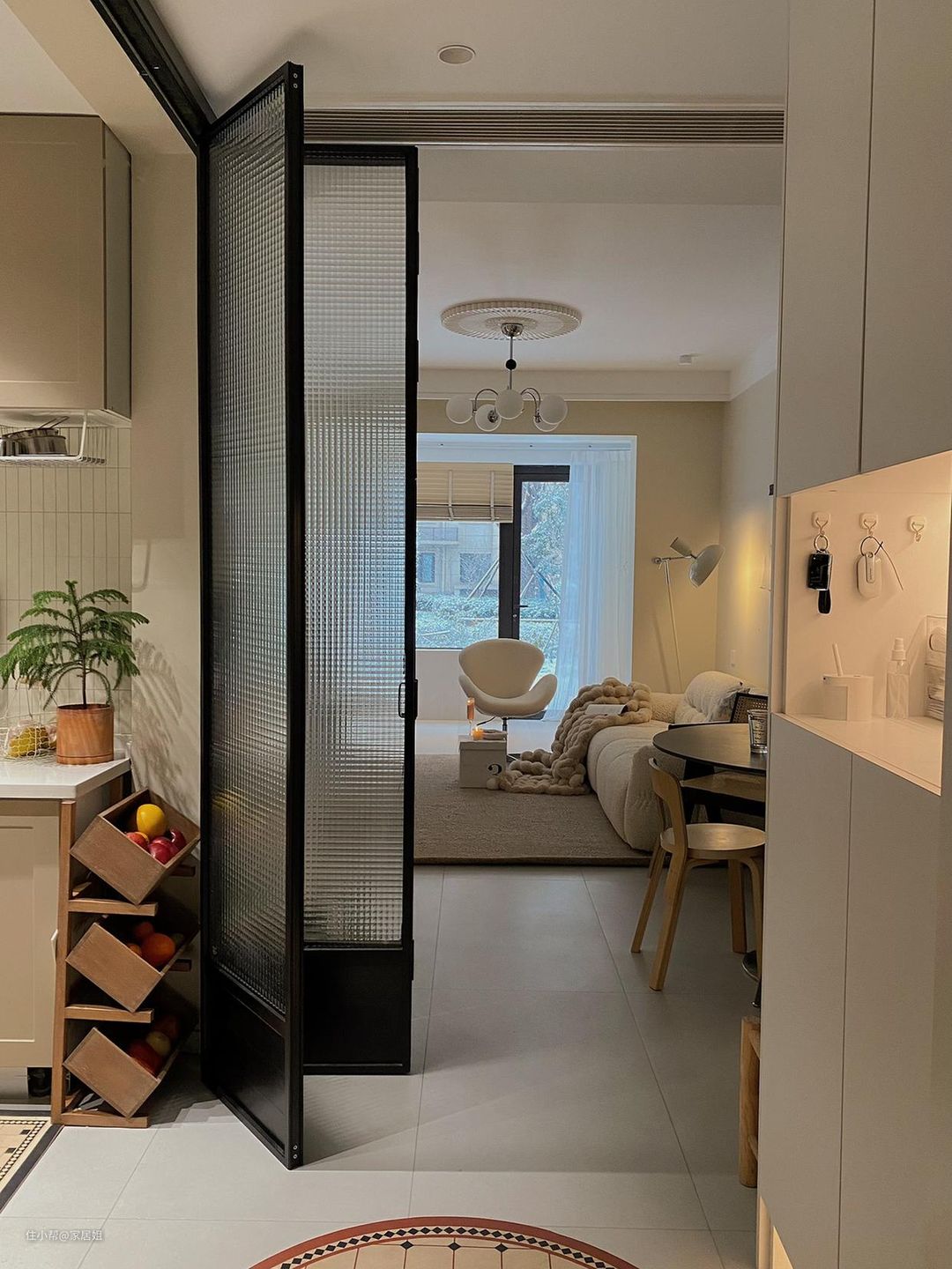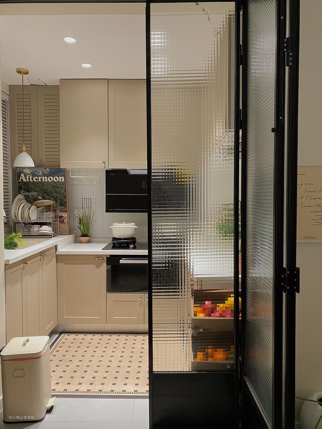 对于小户型来说,用折叠门还能改善采光与通风,不用的时候完全打开,能让整个空间的空气形成对流,有效改善厨房的油烟味。