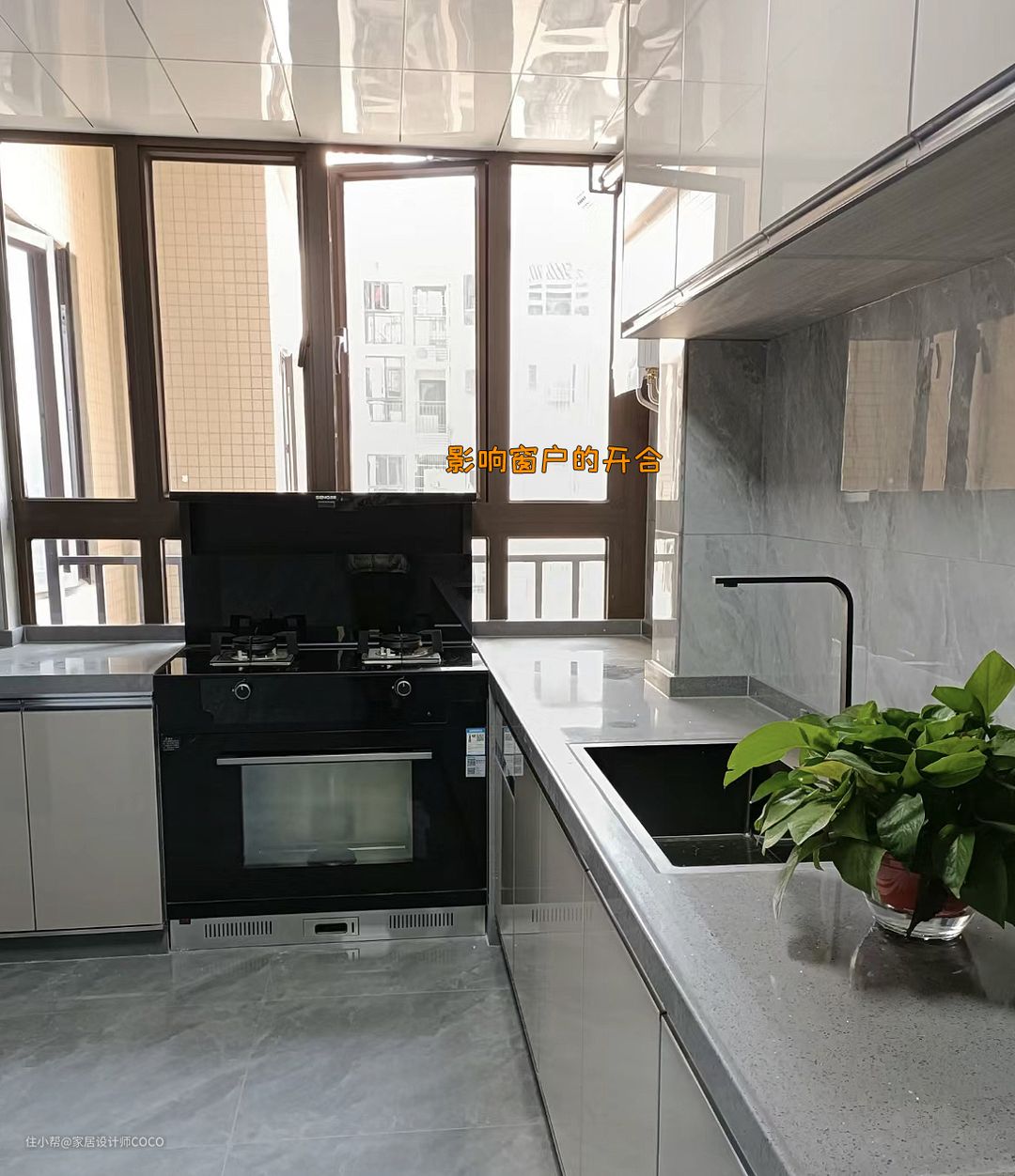 灶台设计在窗台下面,无法安装油烟灶,只能安装集成灶,而集成灶高出的部分,会影响窗户的开合。