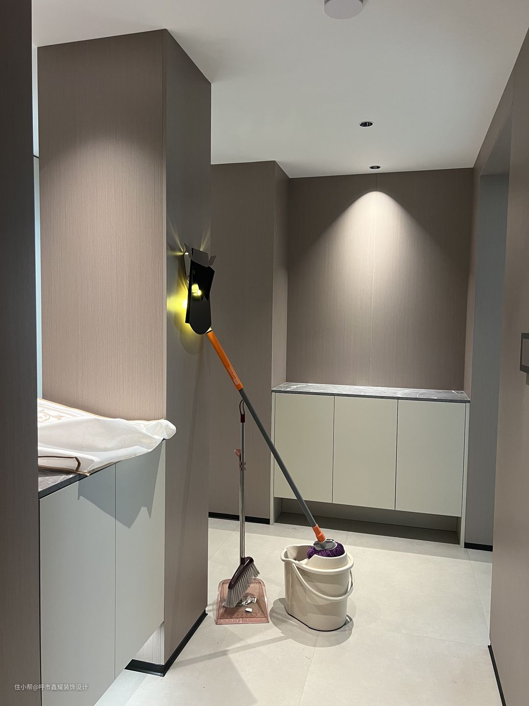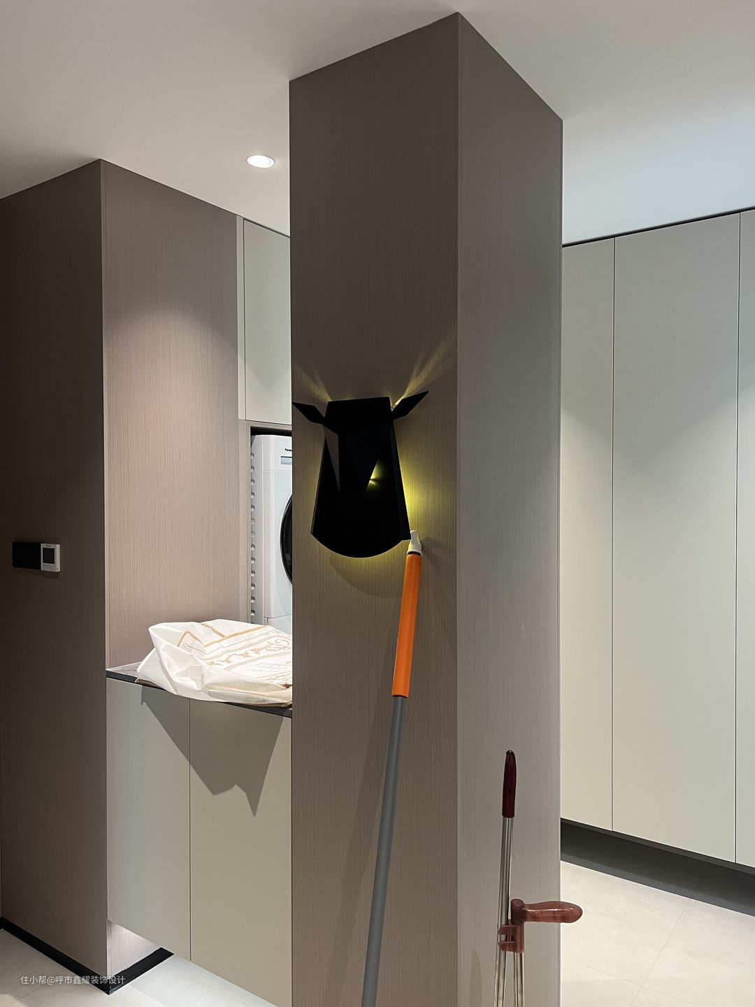 入户门厅满足各个功能的情况下,兼具视觉冲击和美感。及又不影响视觉的拥堵和采光。镂空造型与木质结合,让门户卫生间改造更显层次,墙面壁灯造型的设置,柔化了墙面和原始卫生间烟道装饰的边界,视觉有了延申。把陈设装饰变成了视觉聚焦点,让过道不再显的狭长、更是门厅的点睛之笔