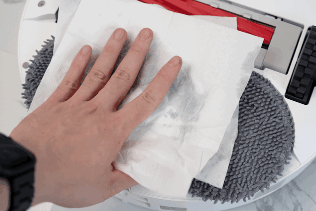 烘干结束后,机器人拖布和基站清洁盘都非常干燥,有效减少细菌滋生与异味产生。
