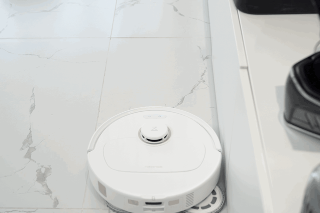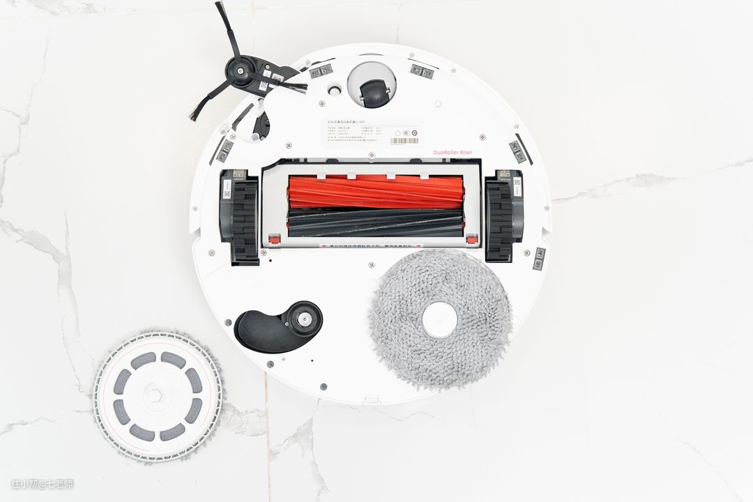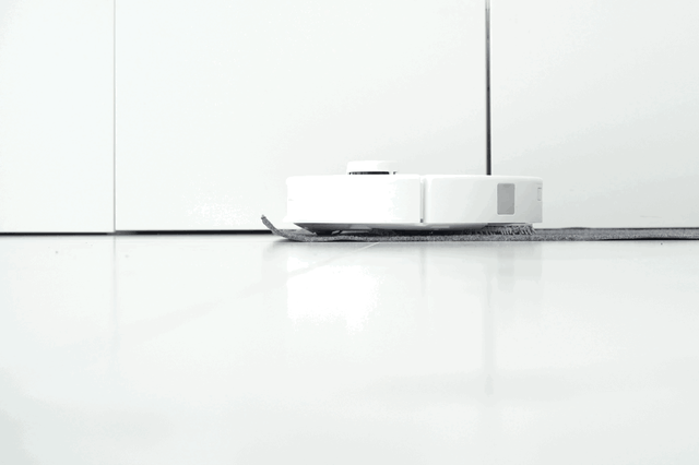 根据清洁模式和场景自动升降,在「拖地」模式下,全胶滚刷上升不贴地面,同时风机自动关闭,机器人运行更安静,而且有效避免尘盒吸水,让尘盒内更干燥。