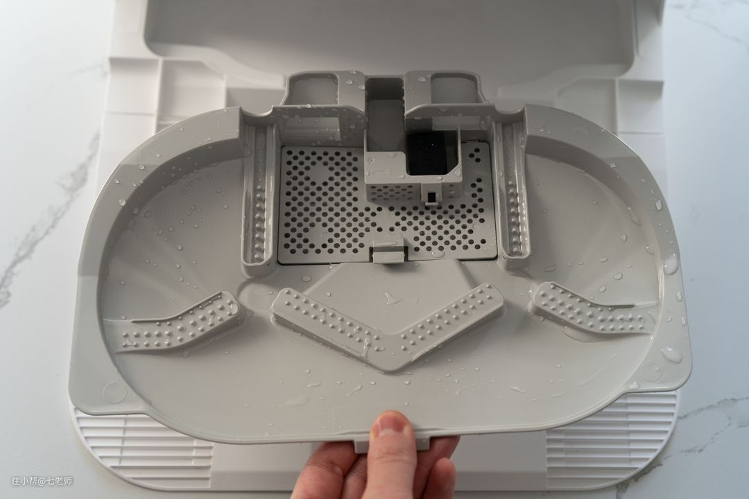 石头P系列的清洗盘可以整体拆下,石头P10S和P10S Pro的清洗盘滤网增大,新的隔离毛絮、大颗粒脏污的能力更强,使用水流简单冲刷就能很干净。