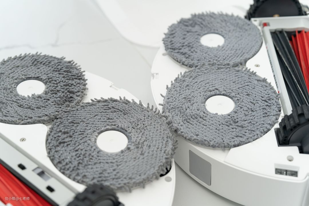 石头P10S和P10S Pro都采用双盘雪尼尔拖布,该拖布具有出色的锁水性和容尘率,同时能贴近不平整的地面并完成清洁。