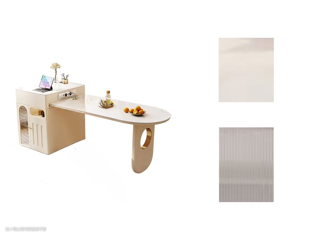 岩板岛台餐桌由奶油色岩板一体打造,打破传统枯燥乏味的封闭式厨房,实现家人间的自由互动。多功能岛台可作为料理区、就餐区以及兼做隔断使用,不仅能扩大厨房的功能面积,还能优化餐厅与厨房间动线。餐桌台面可伸缩设计,随心应对不同容量的聚会;圆润边角+环保级板材,有娃家庭也能安心使用。