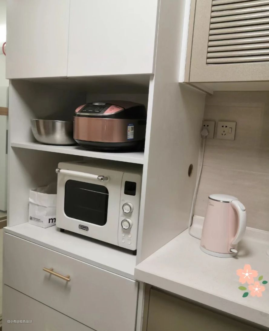 事实上,这个做法非常好。毕竟厨房里的小电器太多了,如果没有一个合理的收纳区,不仅使用起来不方便,还特别占空间。