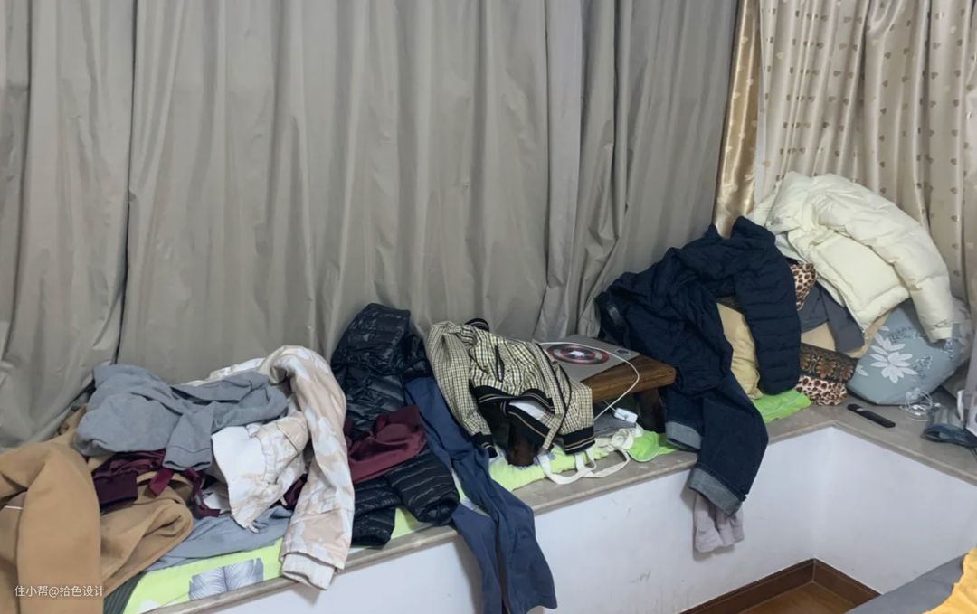由于卧室没有次净衣区,别人家的飘窗都是用来休闲的,而我家的飘窗则是用来堆隔夜衣服的,那叫一个乱啊。