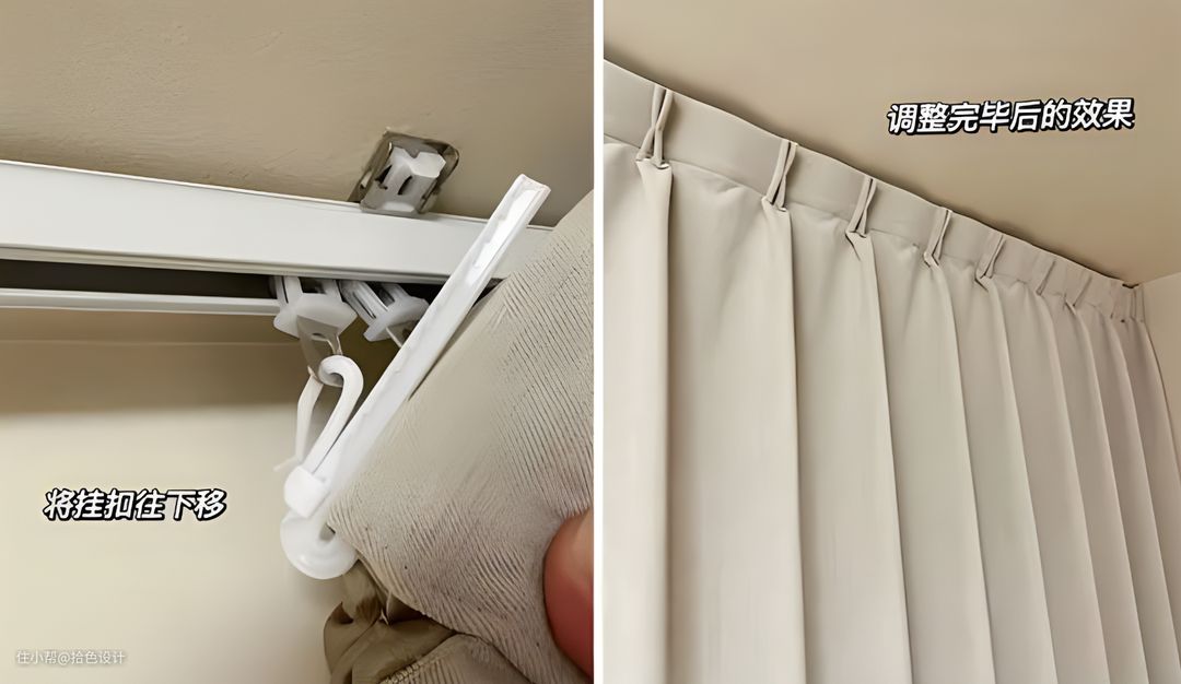 如果是窗帘顶部漏光,那么是挂钩没有选好。建议S升降钩,哪怕没有设计窗帘盒,顶部也不会出现漏光问题。
