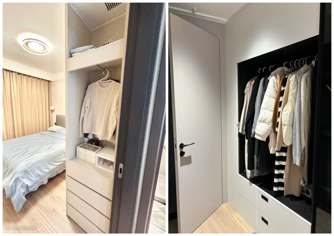 所以,不管是大卧室还是小卧室,都要设计一块次净衣区。一来可以让房间更加整洁,二来找衣服时也不用到处翻了。