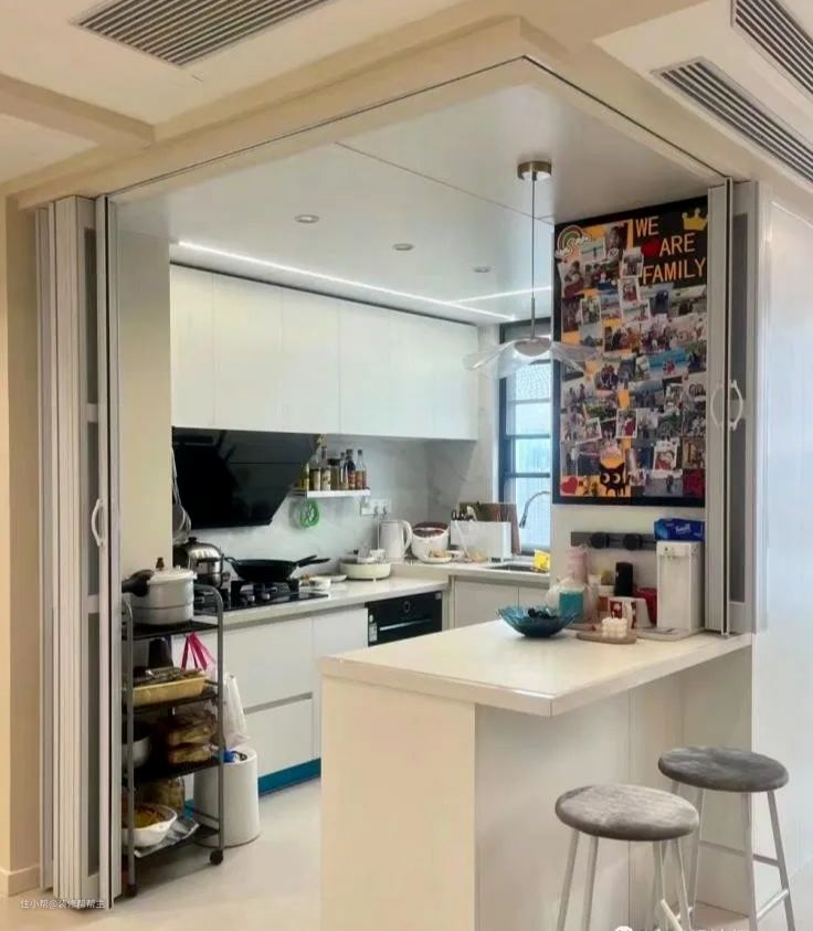 ●提高空间利用率:折叠门可以在瞬间改变空间布局,使厨房与其他空间无缝连接,提高空间利用率。