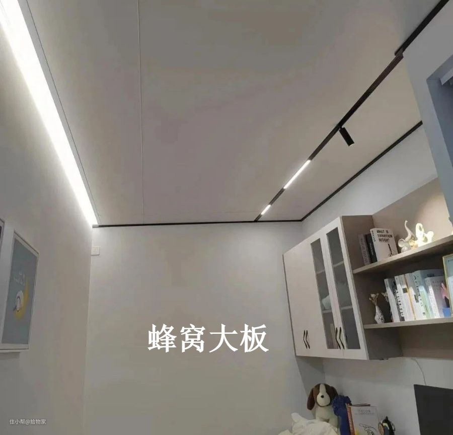 3)蜂窝大板。一种由铝和聚酯纤维制成的装饰性天花板,它的外观与铝扣板吊顶非常相似,但它的内部结构不同。具有不怕潮湿、耐用性高和颜值高的特点。