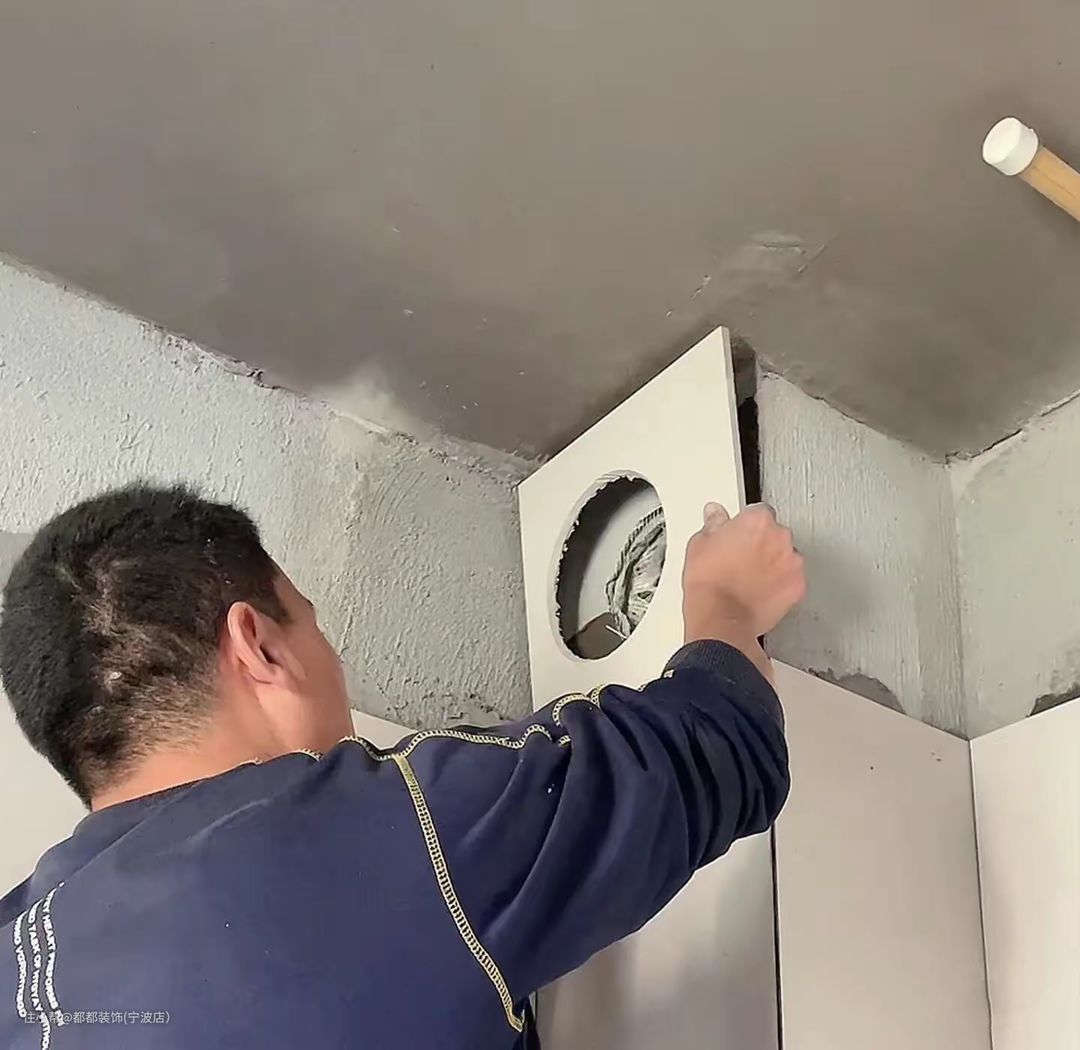 正常吊顶以上部分是不用贴砖的,但是为了防止基层不平导致的止逆阀漏气,在瓦工阶段,让瓦工在止逆阀处单独贴砖,贴砖前把孔切割出来。