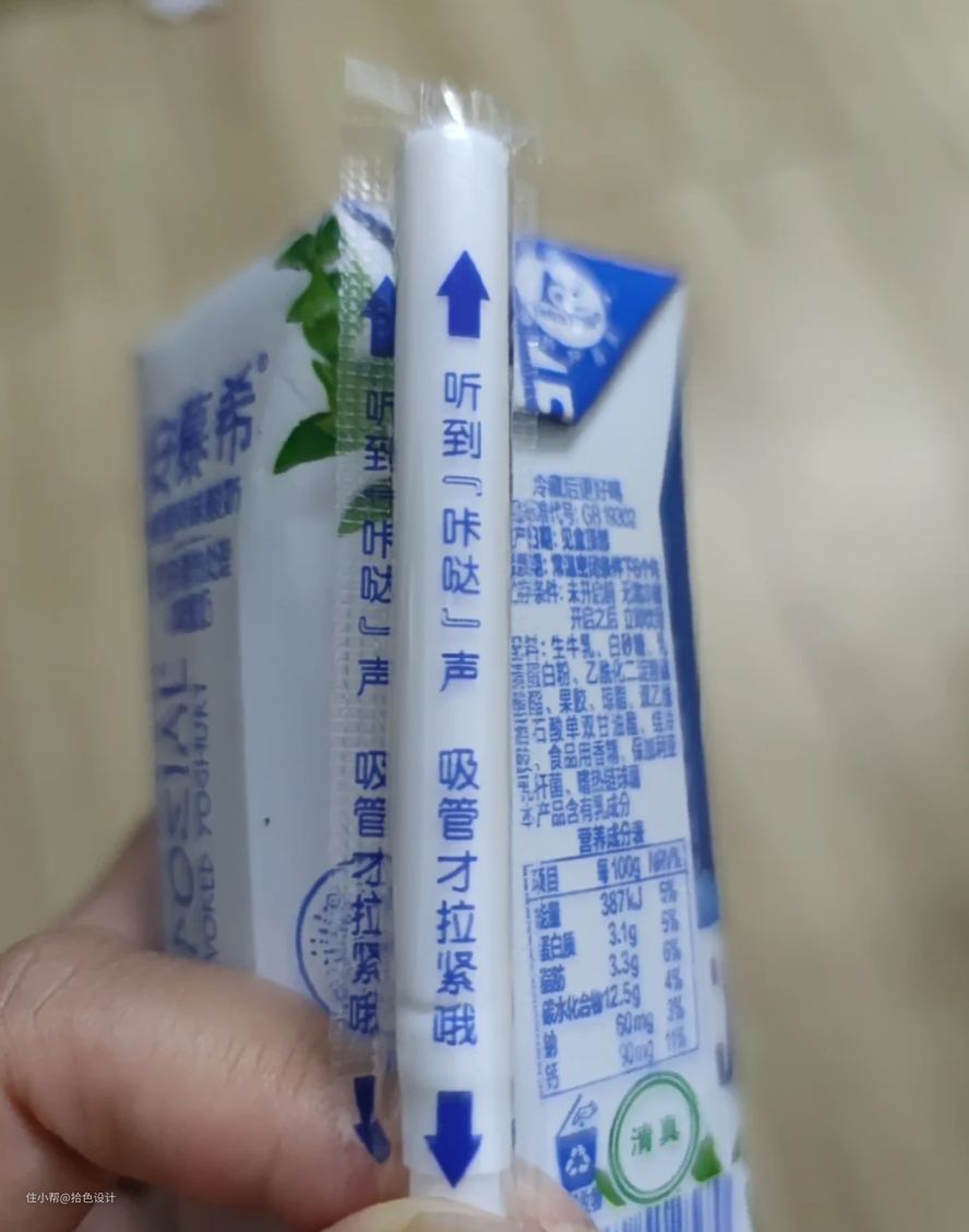 不过有的朋友应该也发现问题了,就是有的吸管在使用时会缩回去,导致酸奶喝不到,然后狠狠吐槽一下吸管的设计师。
