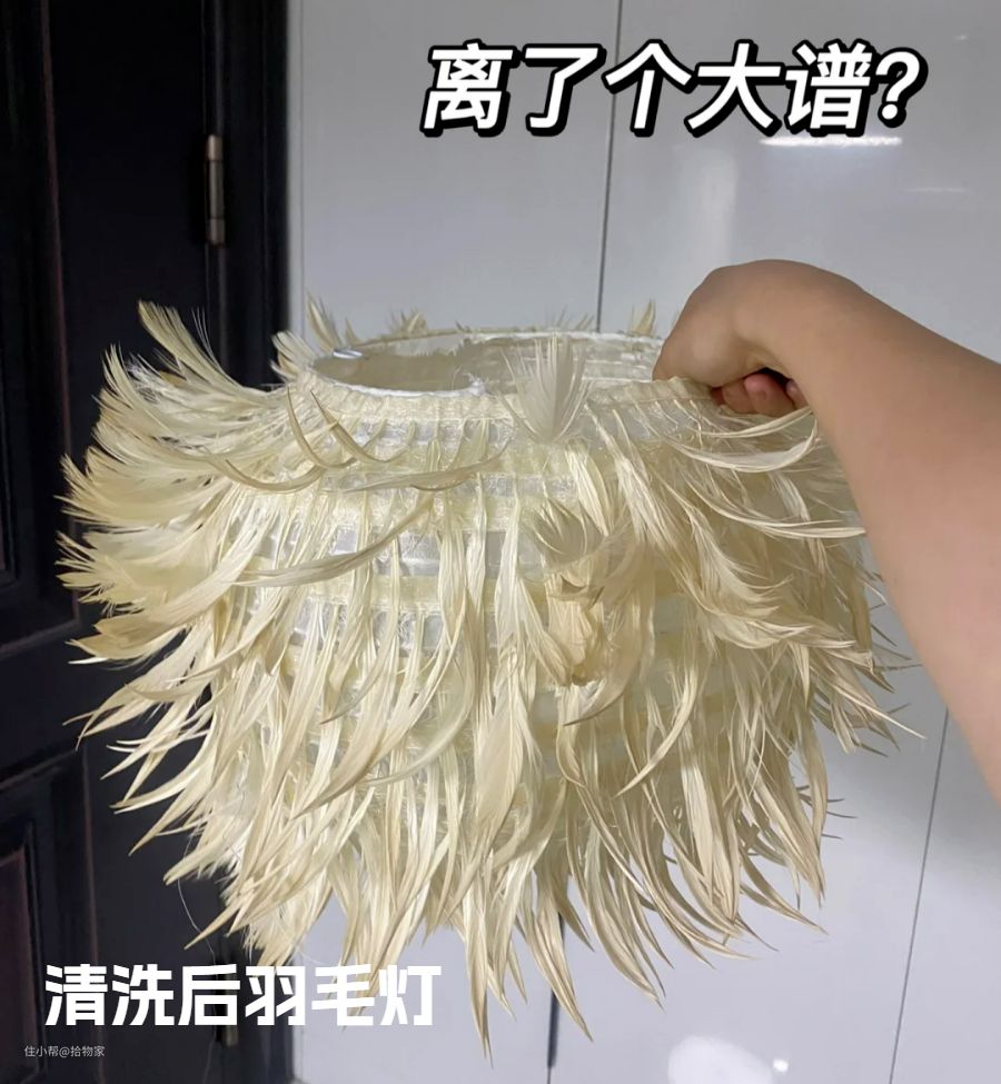 以羽毛灯为例,它虽然好看但是不耐脏,非常容易积灰,而且不能清洗,清洗后就像落汤鸡一样,失去了“灵性”。