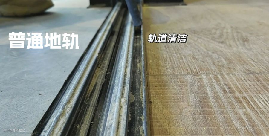 1️⃣普通地轨推拉门,地面轨道比较宽,稳固方面很出色,但是卫生清理特别难,和窗框类似的造型,清理起来特别头疼。