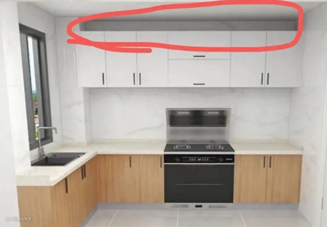 吊柜不通顶,柜子顶面容易积灰,打扫时不方便,时间久了还会滋生蟑螂等虫子,显得特别不卫生;其次,也是对空间的浪费,收纳面积小。卧室里面的衣柜,也是如此。