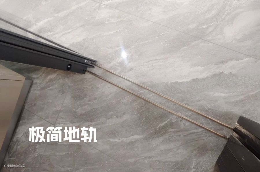 2️⃣极简地轨推拉门,仅有两条简单的轨道,没有额外的框,不容易藏污纳垢,清理起来特别容易。