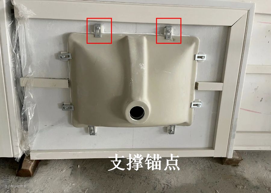 台下盆的安装,常见的有两种,一种是只用胶水粘接,会额外增加几个胶粘的支撑锚点,承重能力最弱;另一种是把菜盆夹在台面和衬板之间,承重能力最强。