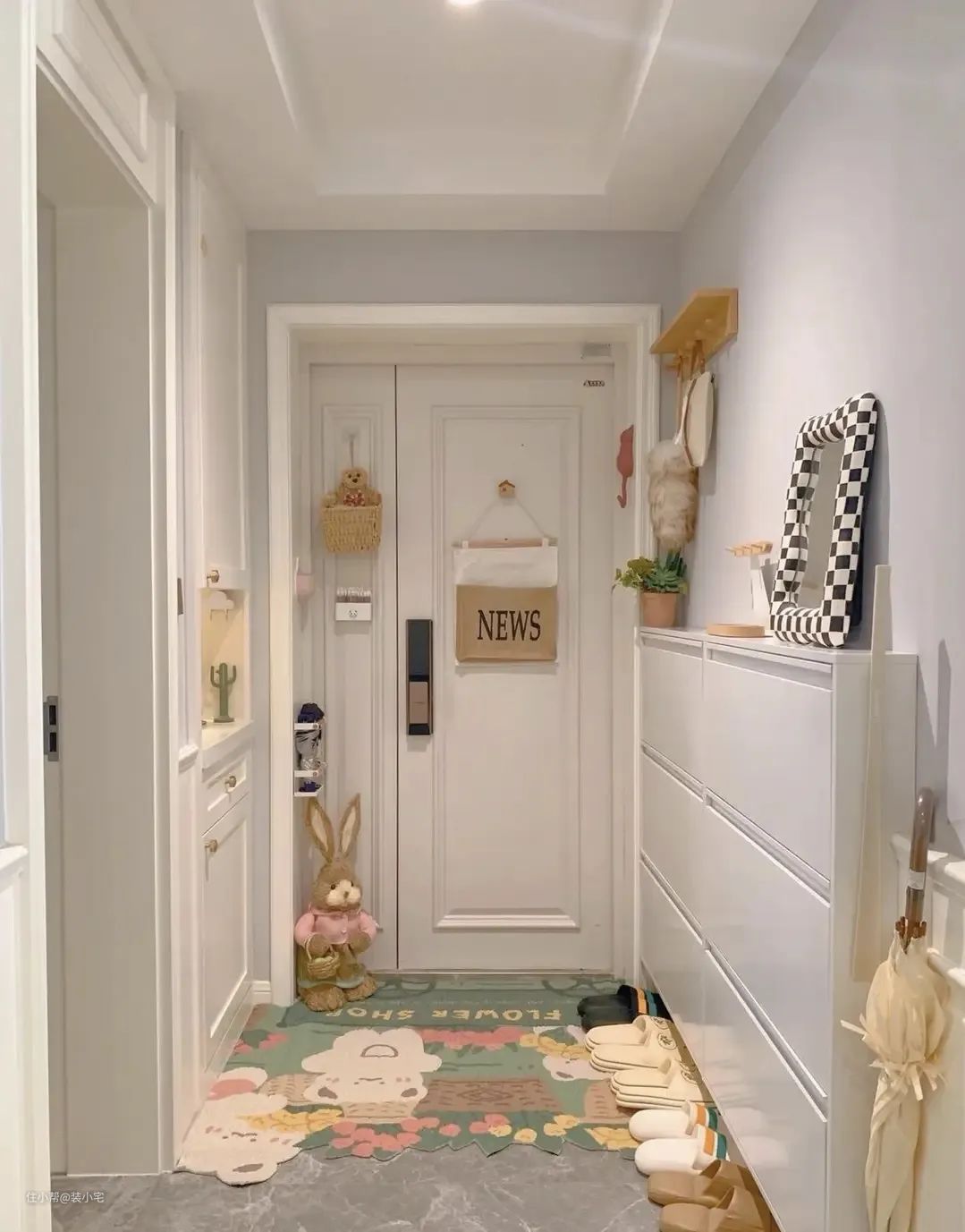 玄关是家的入口,也是室内外过渡的空间。保持玄关的整洁和通透,能够给人留下良好的第一印象。避免在玄关堆积过多鞋子、衣物和杂物,以免给人造成压抑和混乱的感觉。可以设计一个简约而实用的鞋柜或衣帽架,有序地收纳日常用品,让玄关回归其应有的功能。