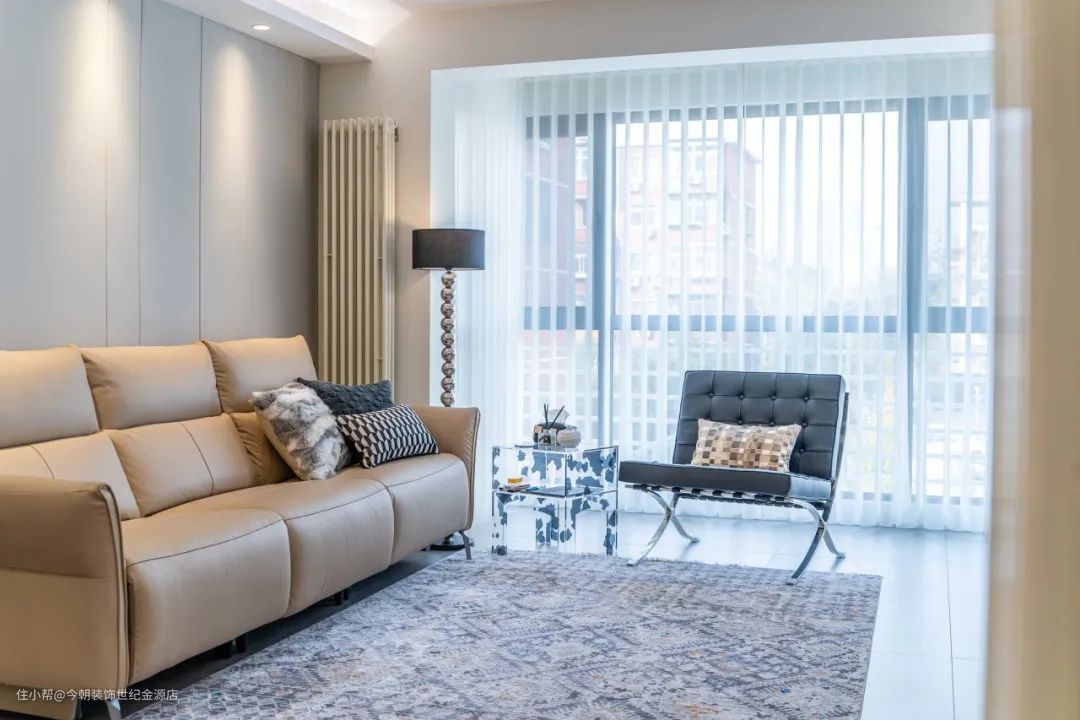 旁边可放置与风格相呼应的茶几、地毯等配饰,不仅让立面空间更有层次感,也是客厅呼应风格的点睛之笔。