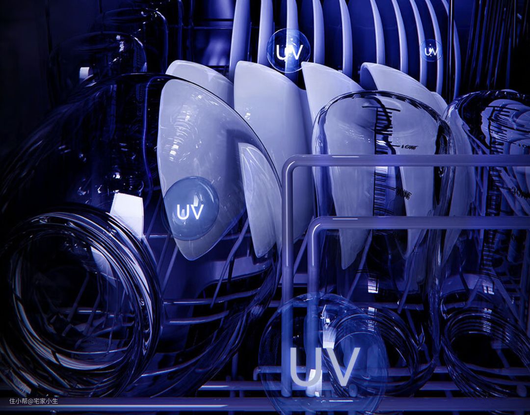 像我家的洗碗机就是双紫外线消毒的,也就是左右两个紫外灯进行全方位消杀。