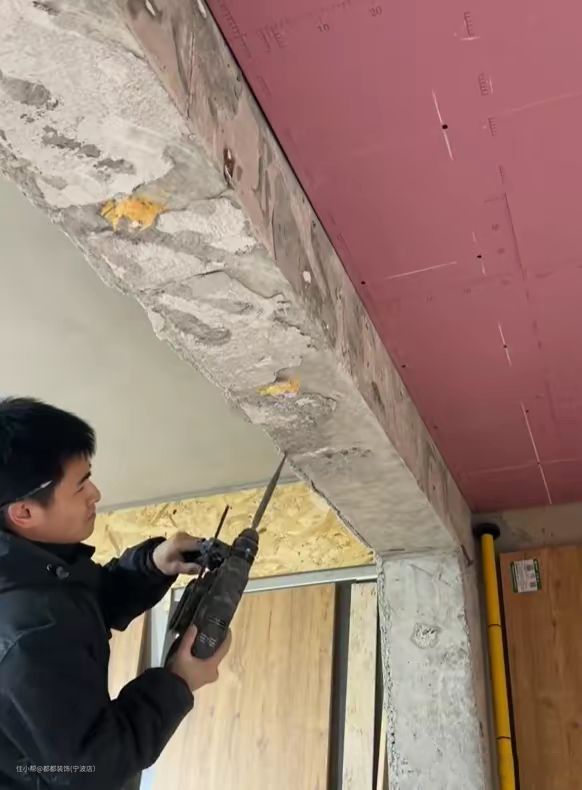 拱形要求内嵌不突出,所以要先用电镐把拱形两端的混凝土破除2cm。