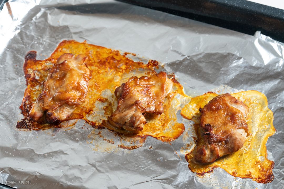最后出炉,大量的油脂被逼出来了~还是那句话,烘烤方式在减脂方面是很不错的选择。