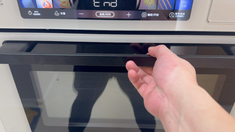 烘焙菜谱给出的时间会因为食材、温度等原因,在最后几分钟是需要肉眼观察,表面焦化合适了就提前停止,不够就加时间。以往的机器只能通过窗口看进去,A1是可以直接打开舱门查看,程序会自动暂停,关上门后,可以调节时间增减,再按开始键继续原来的烹饪程序,非常方便。