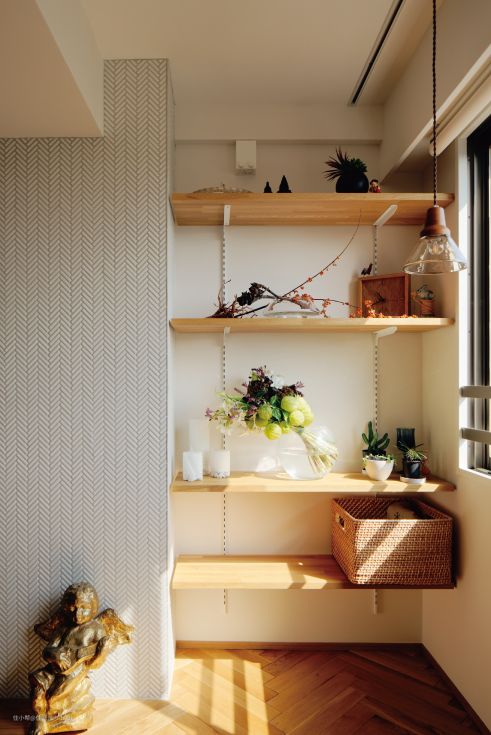 恰好搁板宽窄、长短都能调节,上面的装饰物也多变,能够巧妙的平衡。