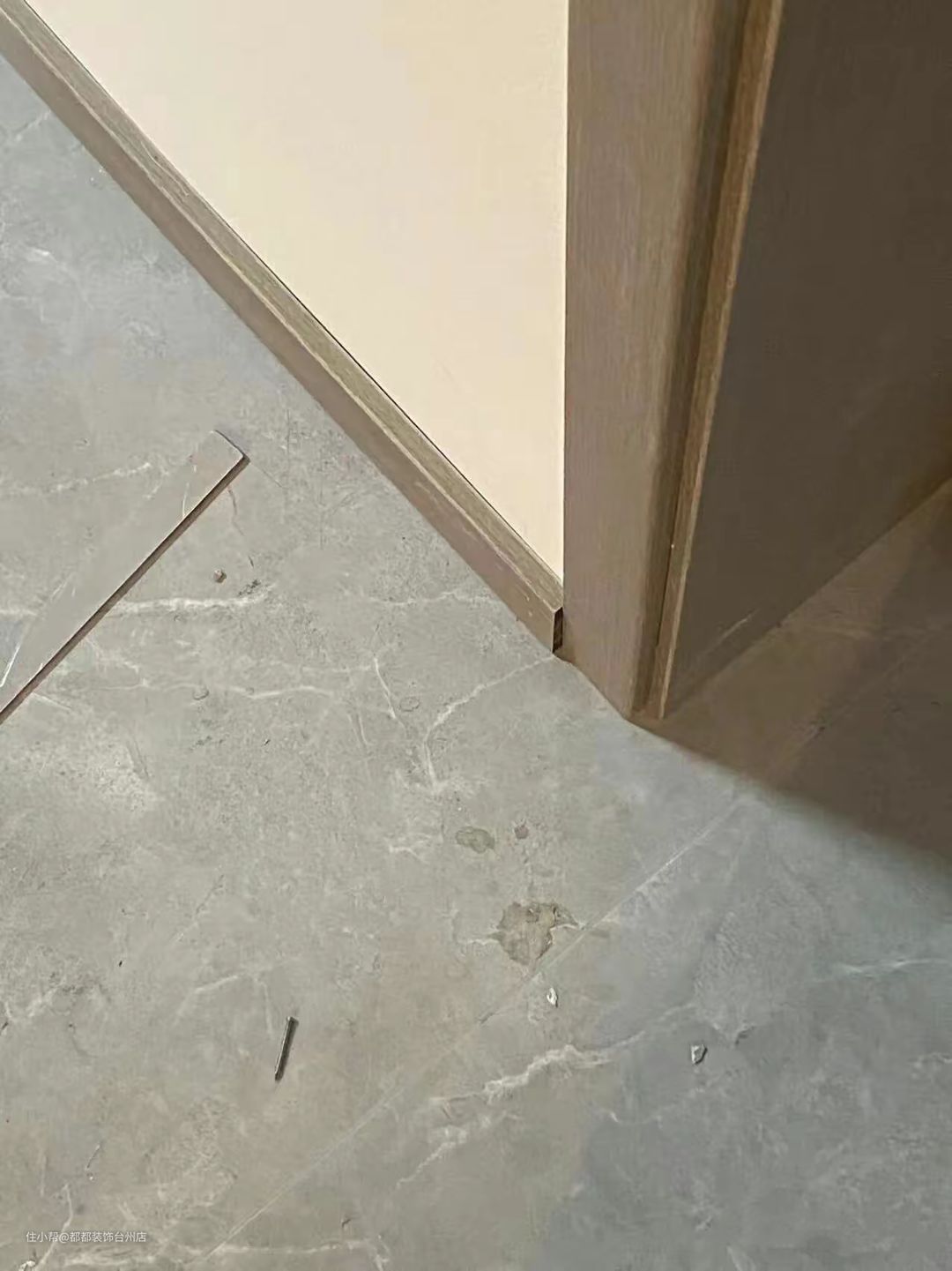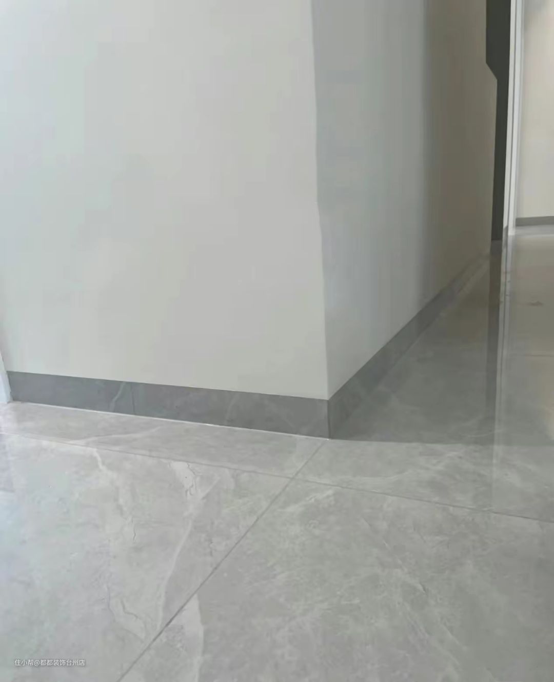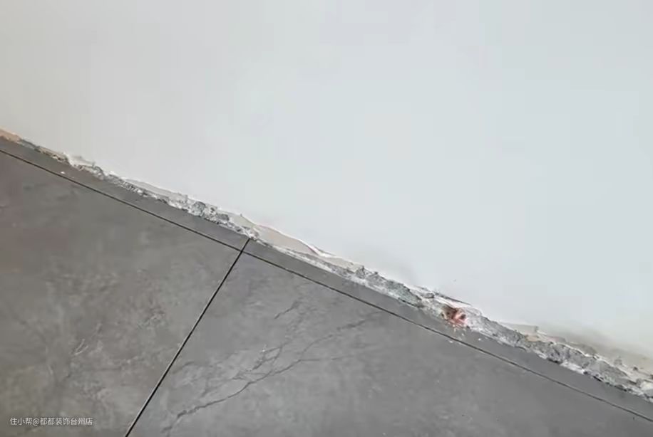 注意,踢脚线与地砖一定要对缝。