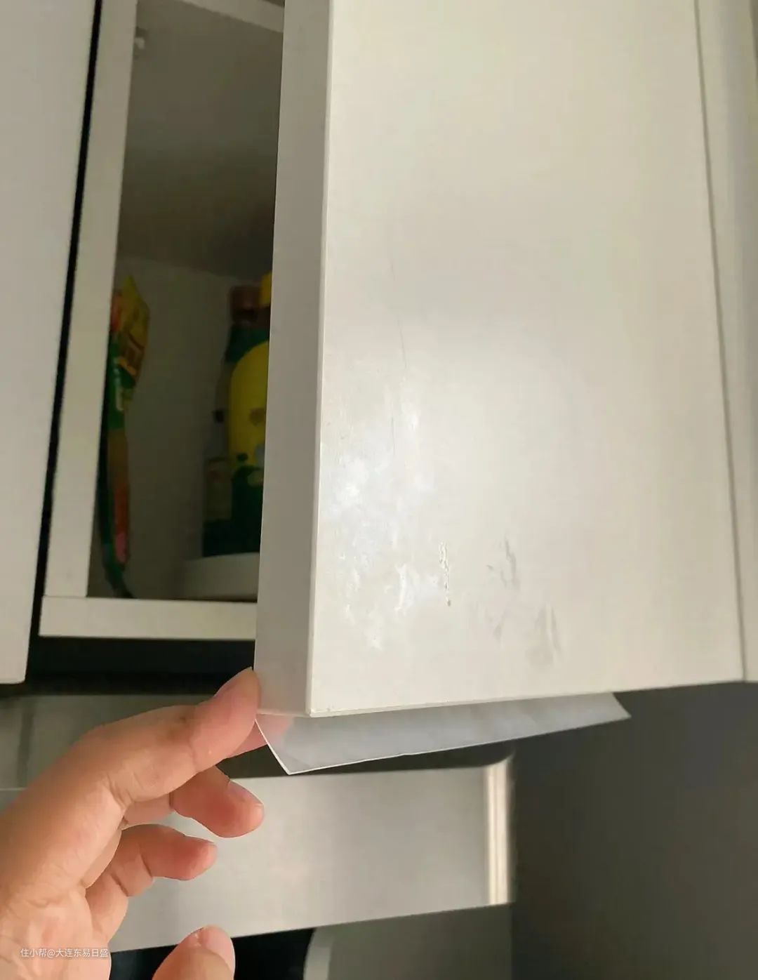 与之相对立的是肤感膜,这两年比较流行,看着却沉稳大气的一种柜门覆膜,使用过的人,都知道特别容易留手印,而且难擦的一批,普通清洁方式根本擦不掉。