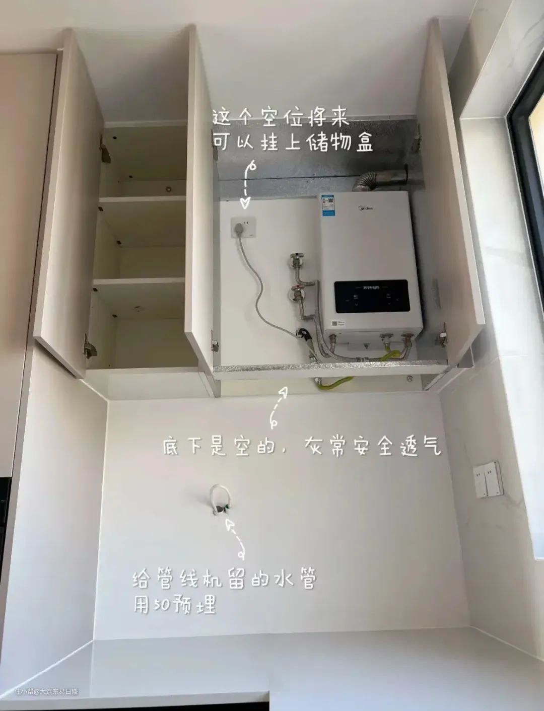 为了厨房更好看,打破固有凌乱空间的印象,热水器隐藏,也是厨房设计中,不可缺少的一项。