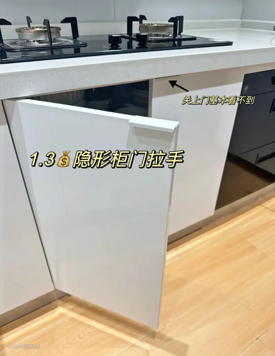 再或者,最原始的隐形柜门拉手也是不错的选择,既有明装拉手的方便,还有极简把手的隐形,性价还很高。