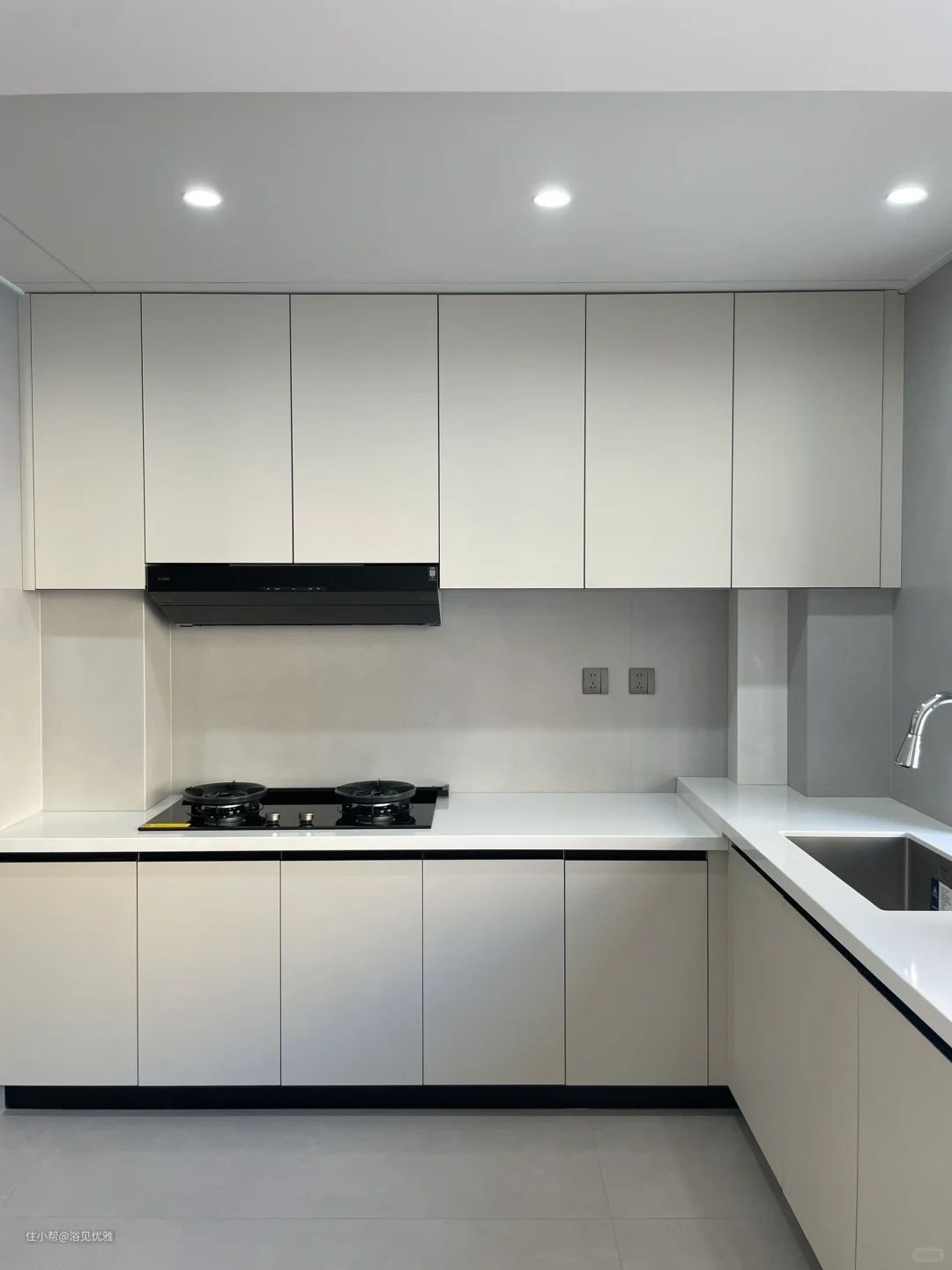 厨房瓷砖铺贴完成后,就要第二次测量,这时就可以确定详细的尺寸,业主也要确定油烟机、洗碗机、微波炉、碗篮、转角架等的详细尺寸,方便橱柜定制。