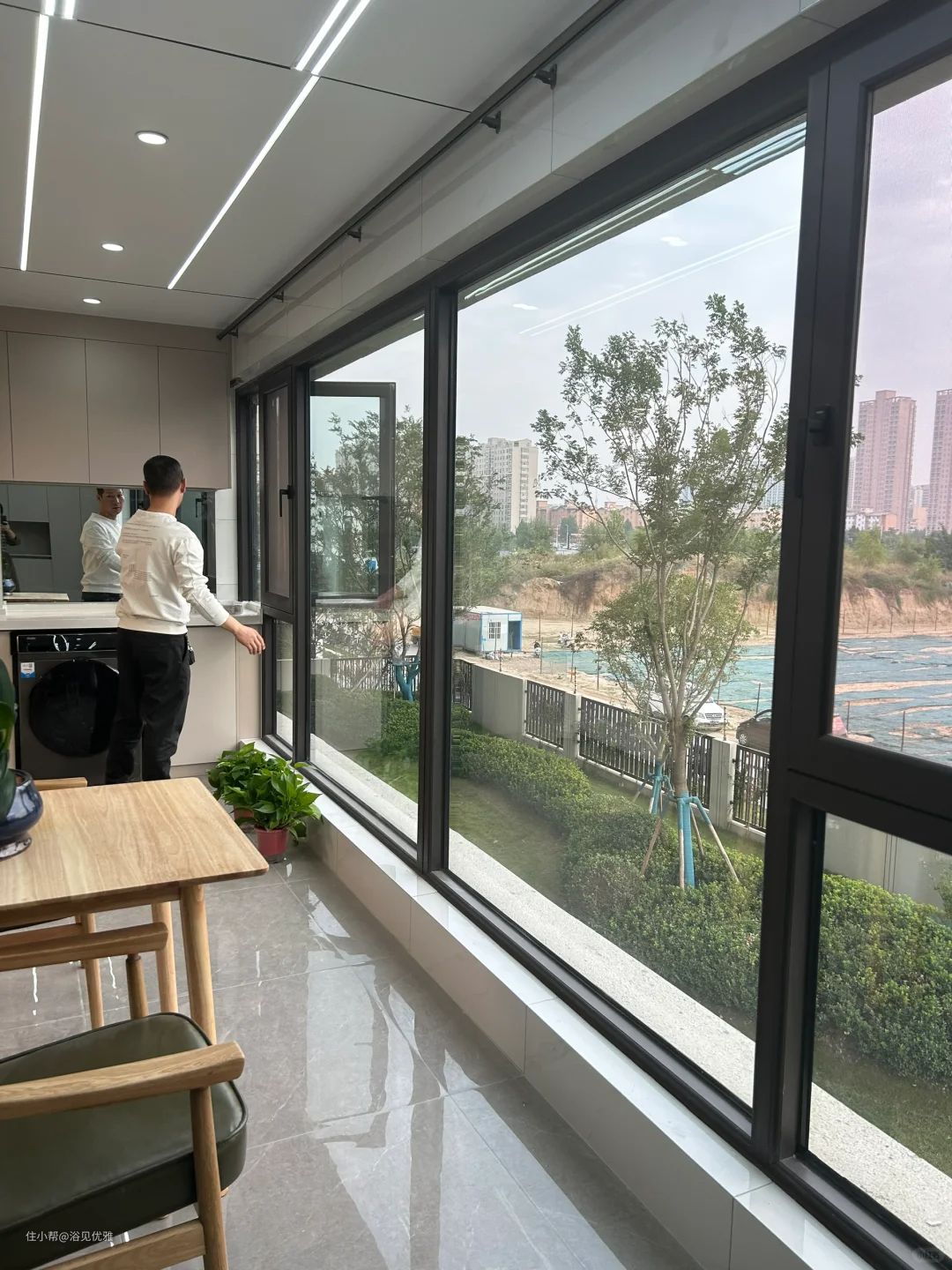 我们在第三点就提到了窗框的安装,玻璃暂时是可以不安装的,但是最迟要在贴地板之前安装,不然万一下雨,雨水会渗透进来,把地板给弄坏。