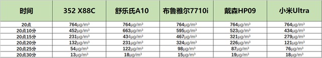 从测试结果可以直接看出,352空气净化器X88C的净化效率是最高的,半个小时内可以净化到只剩下13μg/m³。