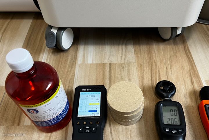 在净化效果评测这块,我分两部分进行,一方面用福尔马林溶液测试5款空气净化器的除甲醛+吸附TVOC的效果。另一方面用烟饼测试5款空气净化器过滤空气中的微小颗粒物的效果。