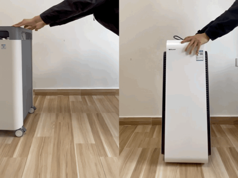 在搬动(移动)设计方面。因为把空气净化器放在房间或空调一个个的净化,效果更好,所以搬动设计是否合理就显的很重要。
