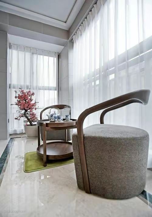 2、如果阳台设计了茶吧、桌椅等休闲功能,建议把布帘安装在客厅,用窗帘把不同的功能区分隔。把纱帘安装在阳台,防止阳光对人直射。
