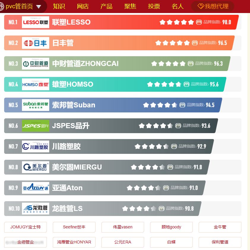 2)水管品牌