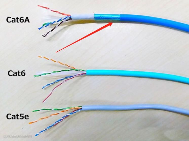 能支持万兆上网,目前最大带宽能达到500MHz,是六类网线的两倍。超六类网线主要用于温度较高的特殊场合,在40摄氏度的时候仍然能够达到六类网线在20摄氏度下的性能。表皮标有“CAT.6A“的字样,经常称为”6A“线,并且大多数有”十字骨架“。