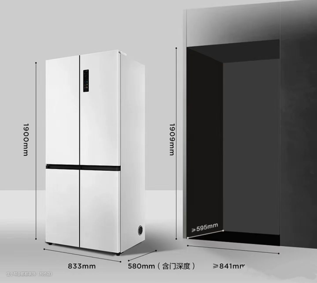 ➡️冰箱+背部电源线的厚度60cm以内,与橱柜同厚。