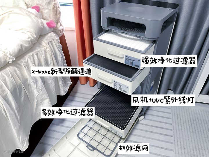 1. 净化配置给力:万元机配置才有的塔式进风结构,六重传感器叠加九层滤网,能够高效应对日常生活中常见的颗粒物、甲醛、甲苯等多种污染情形。滤芯总重量超过12斤,堆料扎实,让人很放心。