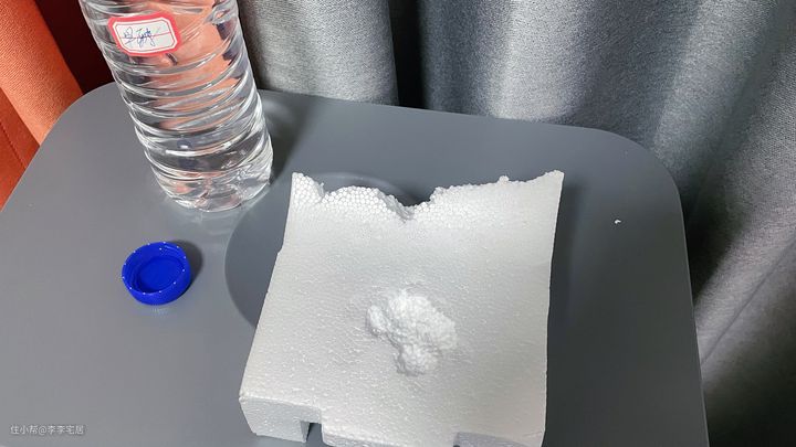 由于我家里不是新装修的,家里甲醛含量应该是比较低的,日常运行的时候HCHO(甲醛)数显都是常绿的状态。为了这个测试,我问化工厂的朋友借了一点甲醛溶液,由于甲醛对人体有害,此处我仅仅用了大概半个瓶盖的量,将其倒在泡沫里面,模拟新房家具甲醛挥发场景。