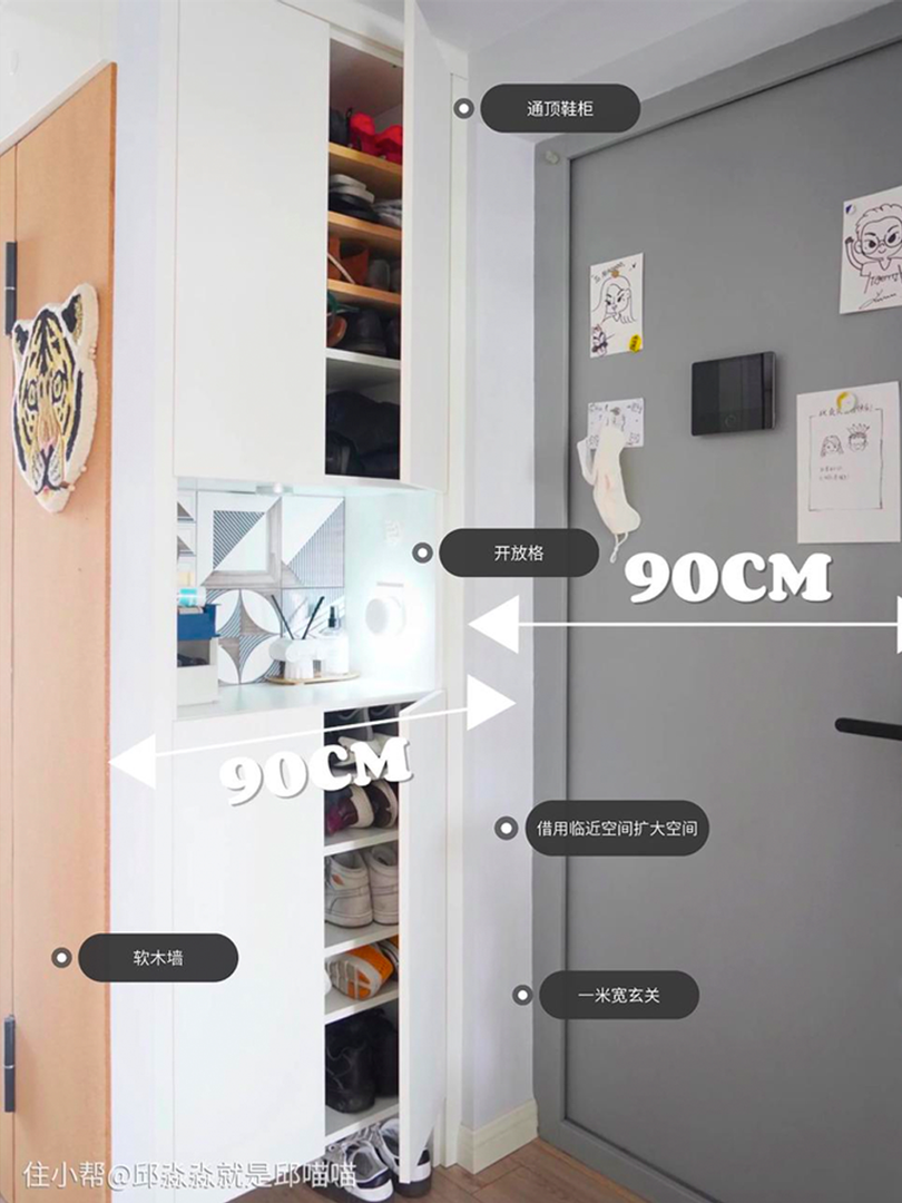 - 鞋架只放常穿鞋,主鞋柜移到更宽敞区域。