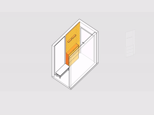 - “借用”相邻空间,公共墙面后移,留出适合收纳柜的尺寸。